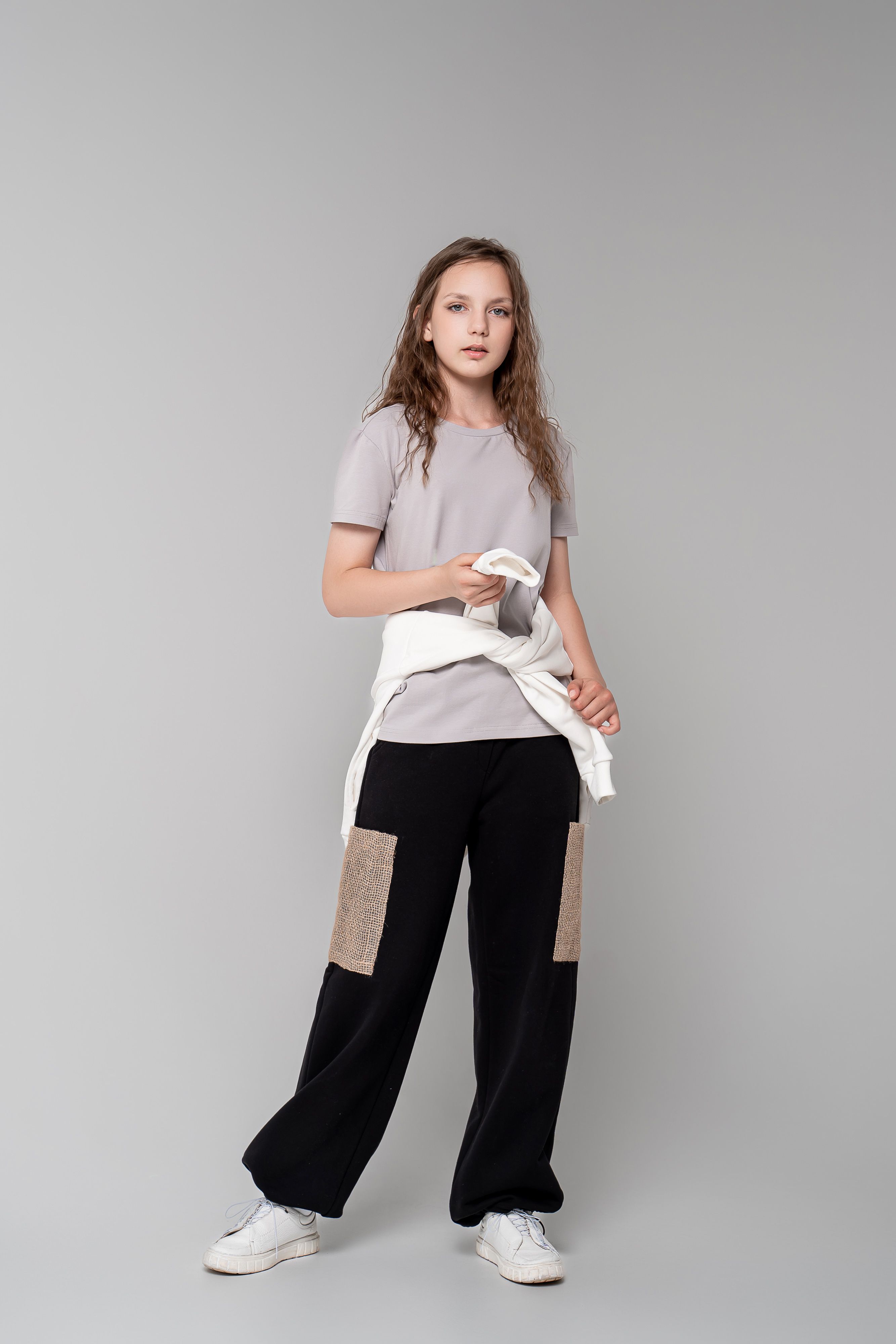 Брюки с накладными карманами из мешковины